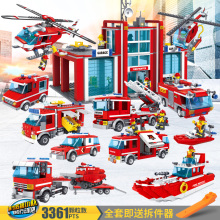 兼容乐高积木3拼装玩具5城市10消防车12男孩警察6-8岁消防局礼物