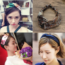 韩国布艺蝴蝶结交叉发带发箍松紧宽边头巾头套洗脸束发带头箍头饰