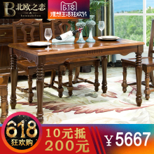 美式乡村实木餐桌 金胡桃木简美方形大小户型6人餐桌椅欧式复古