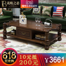 美式实木茶几 简美乡村客厅抽屉长茶几电视柜组合 欧式茶几