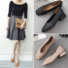 2017春季百搭新款奶奶鞋粗跟小皮鞋复古浅口中跟单鞋休闲方头女鞋