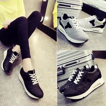 2016春季韩版运动气垫休闲跑步鞋亮片厚底透气旅游鞋内增高女鞋潮