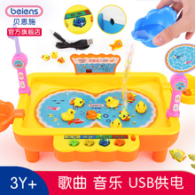 贝恩施儿童音乐灯光磁性钓鱼盘 宝宝钓鱼玩具套装益智玩具1-2-3岁