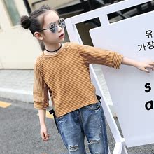 菲菲的衣柜2017春装新款中大女童T恤韩版儿童条纹长袖上衣打底衫