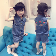 女童套装牛仔短袖两件套2017夏装新款儿童休闲运动中小童夏季韩版