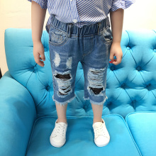 女童牛仔七分裤夏韩2017潮款夏季女宝宝牛仔破洞裤儿童中裤278岁