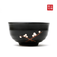 滏山瓷馆 黑色哑光手绘小碗 日式和风土陶碗 创意陶瓷家用米饭碗