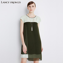 LANCY朗姿2017新女夏圆领爱心收腰雪纺连衣裙LC1D218WOP066