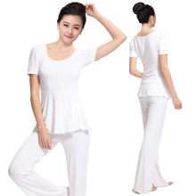 2017尚舞春夏新款 舞蹈瑜伽服套装女 白色大码长款遮肚子荷叶边款