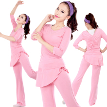 瑜伽服套装健身房跑步运动套装健身服纯棉显瘦上衣紧身运动裤女春