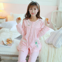 2017春秋季可爱卡通开衫针织棉长袖女士睡衣套装居服
