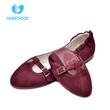 reemoor春季绒面女单鞋尖头浅口平底鞋舒适软底蛋卷鞋睿慕女鞋