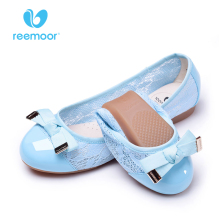 reemoor睿慕春夏女单鞋浅口圆头蕾丝透气平底鞋蝴蝶结软底蛋卷鞋
