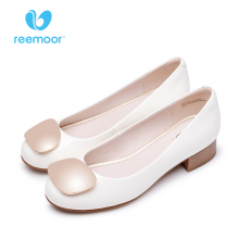 reemoor春夏新款女鞋时尚浅口鞋通勤低跟鞋上班鞋粗跟睿慕女单鞋