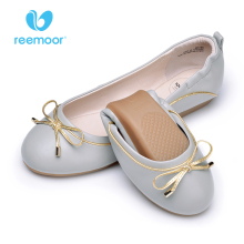 reemoor睿慕春夏百搭浅口平底鞋圆头软底蛋卷鞋女鞋蝴蝶结女单鞋