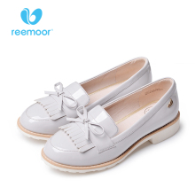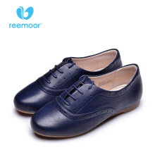 reemoor春季新款圆头系带小皮鞋小白鞋女平底鞋职业鞋睿慕单鞋女
