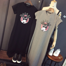 2017夏季欧美风印花纯棉宽松中长款短袖套头T恤连衣裙学生女装