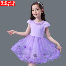 女童夏季连衣裙2017夏装新款紫色儿童裙子春秋公主裙小学生3-12岁