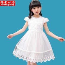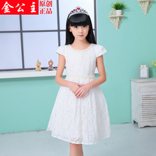 女童连衣裙夏季 中大童白色蕾丝公主裙夏装 2017新款儿童裙子夏