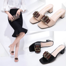 罗马凉鞋夏季女学生性感百搭粗跟一字带绑带中跟露趾时尚潮流女鞋