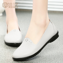 春秋平底妈妈鞋真皮平跟老人鞋皮鞋软底防滑中年女鞋浅口妇女单鞋