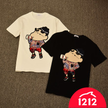 2016春秋冬韩国东大门BF风蜡笔小新磨毛加厚棉短袖T恤打底衫大码