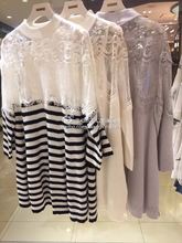2017春夏新品女透视钩花蕾丝刺绣拼接针织连衣裙