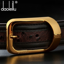 daoleilu男士皮带男真皮腰带男平滑扣头层牛皮黄铜扣中青年裤带潮