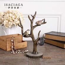 伊莎世家 柏宜斯树枝小鸟首饰架 欧美式复古创意工艺品梳妆台摆件