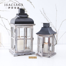 伊莎世家美式乡村木制ZAKKA做旧loft防风烛台装饰摆件装饰品风灯