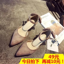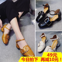 2017春新款女鞋方头粗跟高跟鞋女韩版百搭皮带扣浅口圆头欧美单鞋