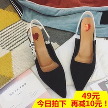 2017夏季欧美百搭尖头平底包头凉鞋网红同款绒面浅口蝴蝶结女鞋潮
