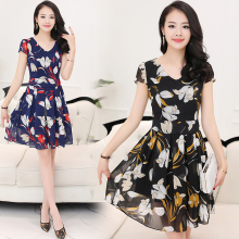 雪纺连衣裙短袖夏装2017新款中年妈妈大码女士气质中长款A字裙子