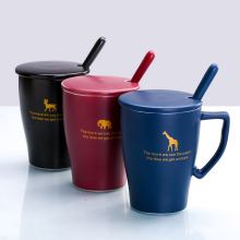 简约咖啡杯陶瓷马克杯带盖勺大容量杯子办公室创意水杯牛奶杯动物