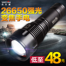 沃尔森26650超亮强光手电筒变焦T6 LED可充电户外远射防水家用