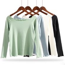韩国一字领露肩针织长袖t恤女大码胖mm秋装纯色外穿秋衣打底衫