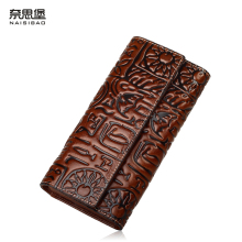 奈思堡真皮钱包女长款头层牛皮横款妈妈钱包多卡位复古压花钱夹
