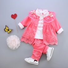 0-1-2-3岁女宝宝秋装套装上衣韩版女童三件套春秋婴儿衣蕾丝服潮