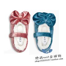 【现货】英国代购NEXT 16秋冬女宝女童天鹅绒蝴蝶结家居拖鞋 棉鞋