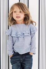 【现货】英国代购NEXT 17春新女宝宝女童淡蓝色荷叶边长袖T恤上衣