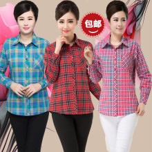 中老年女装衬衫妈妈装纯棉衬衣春秋格子长袖奶奶全棉布开衫上衣
