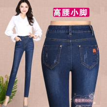 高腰牛仔裤女裤弹力铅笔紧身小脚裤秋冬厚大码长裤子中老年妈妈裤