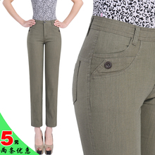 中老年女士九分裤薄款高腰大码弹力修身女裤小直筒纯棉休闲长裤子