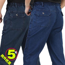 夏装新款中老年松紧腰牛仔裤高腰弹力深裆爸爸长裤男裤加肥加大码