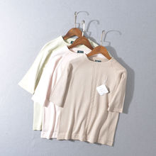 外贸日单 春夏桑蚕丝修身显瘦圆领短袖 针织衫T恤短款薄 上衣女夏
