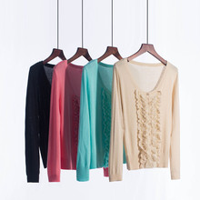 外贸尾单清仓白菜价 春针织衫女蕾丝边开衫 九分袖小清新空调衫短