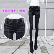 秋冬新款韩版格子裤女加绒加厚长裤小脚铅笔裤外穿打底裤OL休闲裤