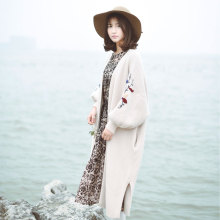 零羽/你的影子/ 简约绣花长款针织披肩 女春季宽松灯笼袖毛衣开衫