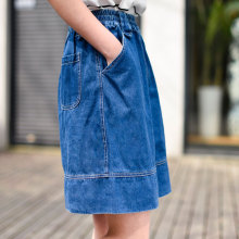 零羽/春夏新款裙子学院风A字裙中短裙松紧高腰宽松显瘦牛仔半身裙