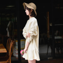 简约时尚打底中长款卫衣女春季韩版潮款刺绣全棉毛圈荷叶边连衣裙